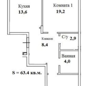 - Общая площадь: 63.4 м²