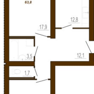 - Общая площадь: 63.8 м²