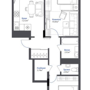 - Общая площадь: 69.3 м²