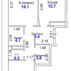- Площадь кухни: 12.7 м²
