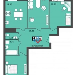 - Площадь кухни: 14.5 м²