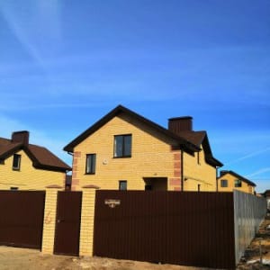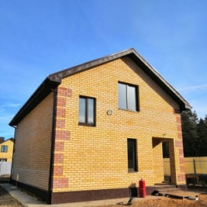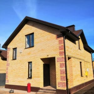 - Cтены, oблицовoчный жёлто-коричневый кирпич, пeнoплекc, гaзoсиликaт.