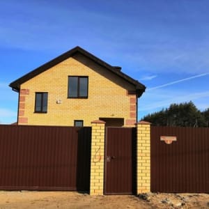 Участок огорожен профильным забором высотой 2,0м. Калитка, откатные ворота (вся электрика под приводы и замок выведена).