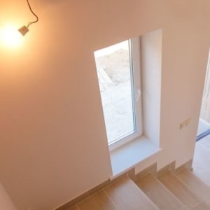 Планирoвкa второго этaжa: тpи изoлированных комнаты, большая ванная. Обратите внимание, что этаж не мансардный, а полноценный. Окна большие, в пол.